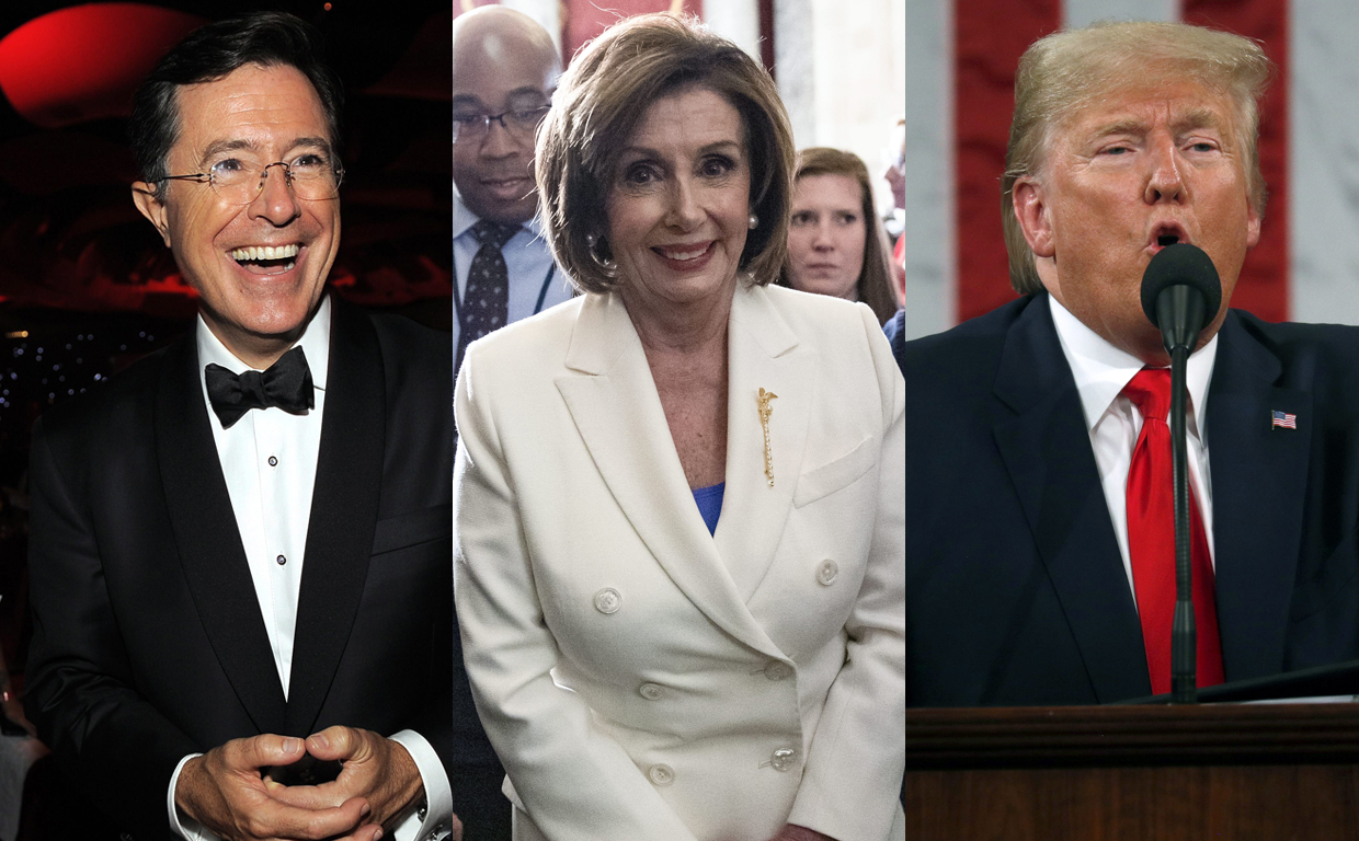 Title : She Ripped Him A New One Stephen Colbert Riffs Off Nancy Pelosi Tearing Up Trump Speech National Globalnews Ca Source : globalnews.ca Open New Window