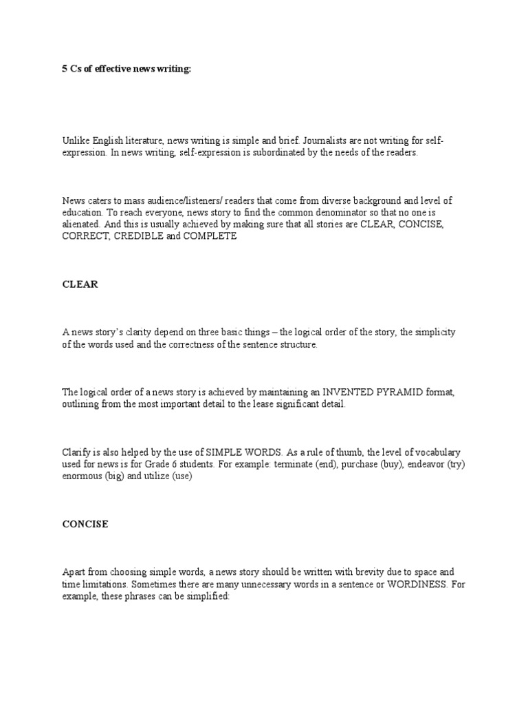 Title : 5 Cs Of Effective News Writing Phrase Vocabulary Source : www.scribd.com Open New Window