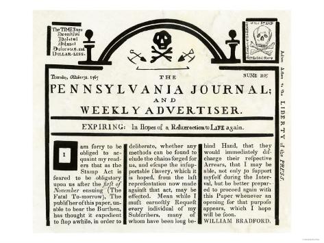Title : Pennsylvania Journal And Weekly Advertiser Protesting The Stamp Act C 1765 Giclee Print Art Com Source : www.art.com Open New Window