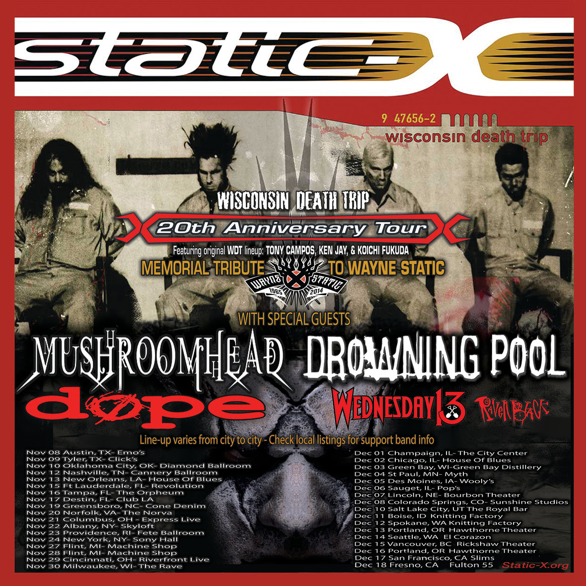 Title : Static X Announce Wisconsin Death Trip 20 Year Wayne Static Tribute Tour Shameless Sf Source : www.shamelesspromo.net Open New Window