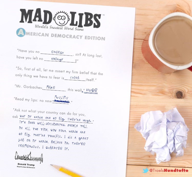 Title : Donald Trump Plays Madlibs Politics Political Memes Source : cheezburger.com Open New Window