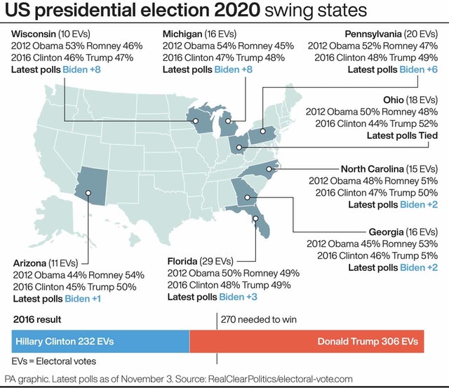 The 2020 united states presidential election is scheduled for tuesday november 3 2020. Check infographics on us presindetial elections 2020 on times of india. Battleground or swing states which can switch back and forth between the two major parties in us. Election results november 3 2020.