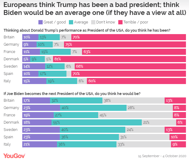 Title : Yougov America On Twitter European Nations Want Joe Biden To Win The Presidential Election Biden 80 Trump 6 Biden 71 Trump 11 Biden 69 Trump 16 Source : twitter.com Open New Window